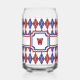 Argyle goes 8-bit and Americana with this red, white, and blue colour scheme. A light tan contrast stitch adds a touch of retro feel. Customize the monogram with your initial to make this drinkware uniquely your own. This glassware is also available in stemless wine and rocks glass styles.