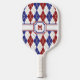 Argyle goes 8-bit and Americana with this red, white, and blue colour scheme. A light tan contrast stitch adds a touch of retro feel. Customize the monogram with your initial to create a unique paddle for your pickleball games.