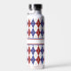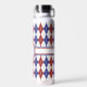 Argyle goes 8-bit and Americana with this red, white, and blue colour scheme. A light tan contrast stitch adds a touch of retro feel. Customize the monogram with your initial to create a water bottle that is uniquely yours.