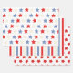 Americana themed red, white and blue wrapping paper, stars and stripes.