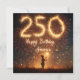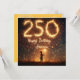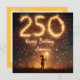 A young girl holding a sparkler stands against a backdrop of vibrant fireworks, with the number "250" and the words "Happy Birthday, America" illuminated in the sky.