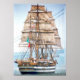 This is a naval training ship for Italy, even though she's painted as an old ship of the line. She is heading for the Varrenzano Bridge in New York. An original photograph from Operation Sail 2000.