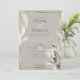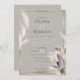 This engagement party invitation features the elegant duo of feathery pampas grass and purple anthurium leaves that are edges in gold - combine this with the rich mushroom grey background and you have an elegant and memorable wedding theme.