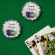 These wedding poker chips are designed to be given as favours or used as a save the date. They feature a simple yet elegant design with a single long stemmed amethyst purple rose lying on it's side reflecting in a pool of water. There is space for the names of the couple and wedding date. Great for a bachelor or bachelorette party, or for any wedding related occasion.