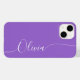 Amethyst Elegant White Calligraphy Script Custom Personalized Name iPhone 14 Smart Phone Cases features a modern and trendy simple and stylish design with your personalized name in elegant hand written calligraphy script typography on a amethyst background. Designed by ©Evco Studio www.zazzle.com/store/evcostudio