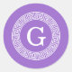 Amethyst Wht Greek Key Rnd Frame Initial Monogram Classic Round Sticker