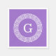 Amethyst Wht Greek Key Rnd Frame Initial Monogram Napkin