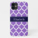 Amethyst Purple and White Moroccan Quatrefoil Trellis Pattern #5, Navy Blue Ribbon Name Monogram Label
