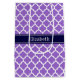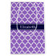 Amethyst Purple and White Moroccan Quatrefoil Trellis Pattern #5, Navy Blue Ribbon Name Monogram Label