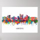 Elegant Watercolor Skyline of Amiens, a city in northern France, divided by the Somme River. It is known for the Gothic Amiens Cathedral and nearby medieval belfry