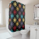 Give your bathroom a homespun look. This shower curtain is patterned to look like an Amish quilt with an Ohio Star quilt block print in red, purple, blue, yellow, gold, orange and green set against a black background.
