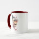 A serene and artistic mug design featuring two warm glowing lanterns hanging from cherry blossom branches. Soft watercolor tones, elegant symmetry, and delicate red blossoms create a peaceful and poetic aesthetic inspired by East Asian art. Perfect for tea lovers, cozy mornings, and anyone who enjoys calming, nature‑inspired designs.