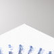 A graphic blue ammonite spiral fossil, inspired by one found on the Jurassic coast on a white ground - simple minimalist and striking.