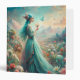 A Turquoise haired woman amongst the flowers