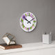 Lavender and pink flowers are featured in a circular pattern around the perimeter of this clock. The charm is in the simple, uncomplicated design. Easy to read numbers. This clock may be personalized with a name in the centre at no additional charge.