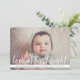 Les cartes de faire-part de naissance simples et modernes présentent votre photo préférée horizontale ou orientée paysage dans un style de saignement complet, avec une bande blanche le long du fond portant le nom et les statistiques de naissance de votre petit. "L'amour au premier regard" apparaît comme un texte blanc superposé à la brosse manuscrite typographie lettrée. Les annonces de naissance neutres et chic pour les garçons ou les petites filles s'inversent vers un motif ikat subtil en gris et blanc.