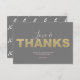 Montrez votre appréciation avec ces cartes Love and Thanks, parfaites pour les mariages ou la Saint-Valentin 2025! Présentant un design simple, élégant et minimaliste, ces cartes présentent une typographie de script branchée associée à une police en faux or moderne et audacieuse sur un arrière - plan gris chic. L'envers met en évidence un motif X et O sophistiqué, ce qui en fait un choix élégant pour toutes les occasions. Coordonnez votre regard avec la suite papeterie correspondante à l'adresse www.zazzle.com/dotellabelle.