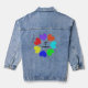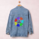 Cette superbe veste en denim présente une image numériquement créée d'un cercle de coeurs d'amour. Chaque coeur est une couleur différente de l'arc-en-ciel. Les coeurs rouge, orange, jaune, vert, bleu, indigo et violet sont une façon ludique et éclatante d'exprimer votre amour pour un petit ami, une petite amie, un mari ou une femme. Le texte noir au centre du cercle des coeurs dit : "L'amour est aveugle en couleur" et célèbre l'amour entre des gens de différentes races.