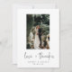 Une carte propre et moderne pour remercier votre mariage. Comprend votre portrait mariage préféré et "love + merci" en dessous dans une police de caractères à lettres modernes. Personnalisez avec vos noms et la date du mariage et le message facultatif au verso.