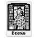 Perfectionnez pour l'amoureux des livres. La conception vintage noire et blanche avec une fille dans la longue robe se reposant sur le dessus d'une échelle qui est entourée par le livre a rempli étagères. Sous des "LIVRES"