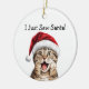 Cat Kitten Kitty Xmas Arbre pendaison Décoration pour Amoureux de les chats Feline Cadeau Collectible. Cet Ornement de Noël de Chat Amusant comporte un Chat Mischievous. Ce Chaton Whimsical ne peut pas croire ses yeux quand il voit le Père Noël ! Célébrez vos amis Feline fous et totalement fantastiques avec ce cadeau de Noël Amoureux de les chats! Un Kitty humoristique dans une décoration de Noël pour votre arbre de Noël. Le verset dit : "Je viens de voir Père Noël !" Cet Ornement de Noël amusant est si mignon qu'il me donne envie d'éclater en chanson... "Et un chat dans l'arbre de Noël, Fa la la !"