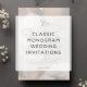 Personalize this classic and elegant wedding invitation with your monogram or duogram joined by a decorative script ampersand. Add your wedding details beneath in timeless black lettering with calligraphy script accents, overlaid on a favourite vertical photo with an opaque layer for text contrast. A beautiful choice in classic black and white for formal weddings in any season.