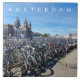 A beautiful view of a sea of bicycles in Amsterdam in the Netherlands printed on a souvenir ceramic tile.
