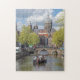 A beautiful photograph of a boat on one of Amsterdam's famous canals printed on a puzzle.