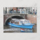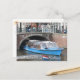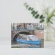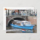 Amsterdam Canal Boat Tour Postcard. View on an Amsterdam bridge and canal with blue canal cruise tour boat and houses cityscape in Holland, The Netherlands postcard. This Amsterdam postcard is fully customizable, add your text and images! A beautiful city of Amsterdam Holland postcard, send it to your friends and/ or family members!