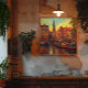 a beautiful painting in van Gogh style of the canal houses and houseboats in Amsterdam
