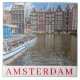 A beautiful view of traditional houses by a canal in Amsterdam in the Netherlands printed on a souvenir ceramic tile.