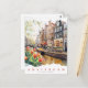 Amsterdam Canal Spring Time Watercolor Travel Postcard