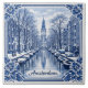 Amsterdam canal winter Delft Blue style tile