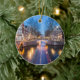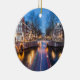 A view of the Amsterdam Canals at Night with the trail of boats going past