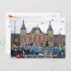 Amsterdam Central Train Station Postcard. Amsterdam train station and traffic lights with people walking in Holland, The Netherlands postcard. This Amsterdam cityscape postcard is fully customizable, add your texts and images! A great city of Amsterdam Holland postcard, send it to your friends and/ or family members!
