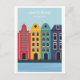 Anyone would love to receive this vintage Dutch travel postcard featuring a colourful, retro canal house illustration of Amsterdam, Holland in the Netherlands!