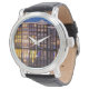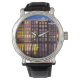 Men's Vintage Black Leather Strap Watch with a photo a Traditional Dutch Buildings in Amsterdam at Night