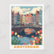 Capture the charm of Amsterdam with this beautifully illustrated vintage-style postcard. Featuring the city's iconic canal houses, bicycles, and peaceful waterways, this postcard is perfect for travel enthusiasts, collectors, or as a keepsake from the Netherlands. Send a piece of Europe or display it as unique wall art.