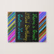 Ce puzzle amusant, coloré et fantaisiste à thème d'anniversaire présente un voeu d'anniversaire chaleureux comme "Ayez un grand 52e anniversaire, Custom-Name!". Le nom peut être personnalisé. Il y a aussi des bandes multicolores en haut et en bas. Un casse-tête comme celui-ci pourrait être une façon amusante d'offrir des voeux d'anniversaire à quelqu'un qui célèbre son cinquante-deuxième anniversaire. [~Z0000268]
