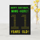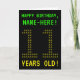 La façade de cette carte d'anniversaire geeky et modifiable présente les messages "HAPPY BANTHDAY" et "11 ans !", ainsi qu'un nom de destinataire personnalisé. Les messages sur le devant ont un look inspiré par les jeux vidéo rétro pixélisés. Les chiffres du grand numéro "11" sur le devant sont composés de "1" de taille plus petite, donnant un look inspiré de l'art ASCII. L'intérieur comporte un message d'anniversaire personnalisable. Une carte de voeux d’anniversaire personnalisable comme celle-ci pourrait être une façon stupide de commémorer le onzième anniversaire de quelqu’un. [~Z0000366]