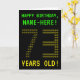 Le recto de cette carte d'anniversaire geeky et modifiable présente les messages "HAPPY BANTHDAY" et "73 ans !", ainsi qu'un nom de destinataire modifiable. Les messages sur le devant ont une apparence pixélisée, vieux jeu vidéo de l'école. Les chiffres du grand numéro "73" sur le devant sont eux-mêmes composés de petits chiffres "7" ou "3", donnant un look inspiré de l'art ASCII. L'intérieur comporte un message d'anniversaire personnalisable. Une carte de voeux d’anniversaire personnalisable comme celle-ci pourrait être une façon spéciale de célébrer le soixante-treizième anniversaire de quelqu’un. [~Z0000366]