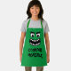 Amusant tablier de cuisson monstre de cuisine verte pour les enfants. Cuisine et tabliers de cuisines personnalisés pour les enfants. Un dessin animé amusant avec de grands yeux et la bouche avec des dents pointues. Ajoutez votre propre nom ou une citation amusante. Créez votre propre cadeau unique de fête d'anniversaire pour fils, fille, neveu, frère, soeur, ami, cousin, etc. Disponible en petites et grandes tailles. Idéal aussi pour barbecue, dîner-fête pour enfants, projets d'art et d'artisanat, dessin, cuisson, peinture, Halloween et plus encore. Arrière - plan couleur vert ou personnalisé. Bracelet vert.