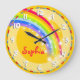 Amusants enfants Rainbow nom mur jaune horloge