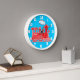 Amusants nom train rouge et bleu horloge murale