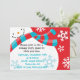 Commencez votre événement outre de la droite par envoyer à vos invités juste l'invitation customisé droit de Noël d'amusement de bonhomme de neige. Cet invitation offre un bonhomme de neige amical complet avec le sourire de nez et de charbon de bois de carotte. Il utilise un bleu brillamment coloré et une écharpe en pastel dépouillée par rouge qui est très à la mode !
