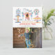 This cute kid's birthday photo invitation features a a white background with a Carousel, Ferris Wheel, Roller Coaster, Self-control Plane, Castle, and Carnival Cart. The reverse side features a white background with red chevron patterns. Personalize for your needs. You can find more matching products at my store.