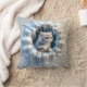 An Adorable Cat in a Snowy Hideaway Throw Pillow