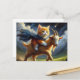 An adorable ginger kitten riding a goat postcard