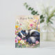 Keep in touch with this sweet postcard featuring an adorable sleepy skunk napping in a bed of pink and yellow flowers.