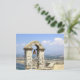 Capture the serene beauty of Greece with this stunning postcard featuring a lone bell framed by a stone archway, overlooking the azure Mediterranean Sea. Perfect for sending a piece of Grecian tranquillity to loved ones or adding a touch of Mediterranean charm to your collection.